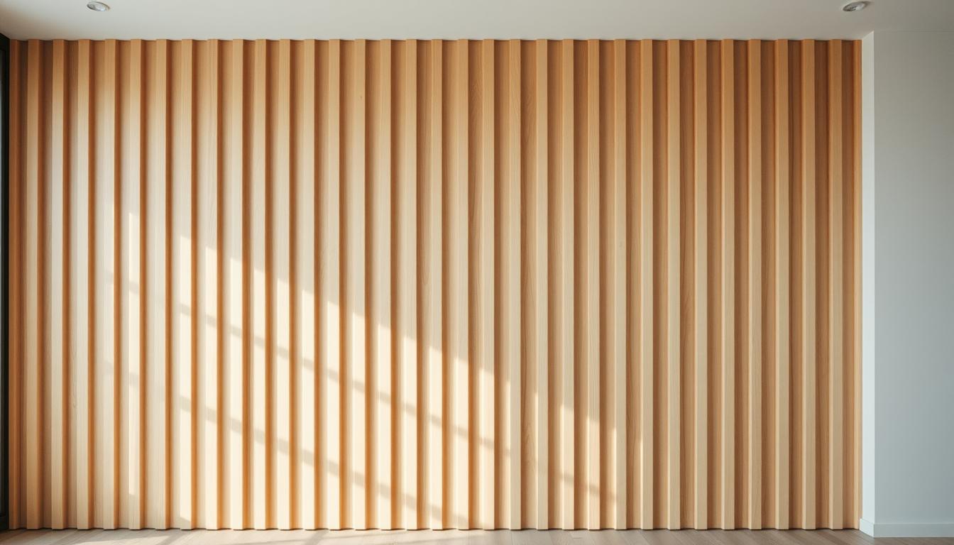 Um painel ripado é feito de tiras de madeira. Elas são colocadas de forma horizontal ou vertical. Isso cria um efeito moderno e limpo.