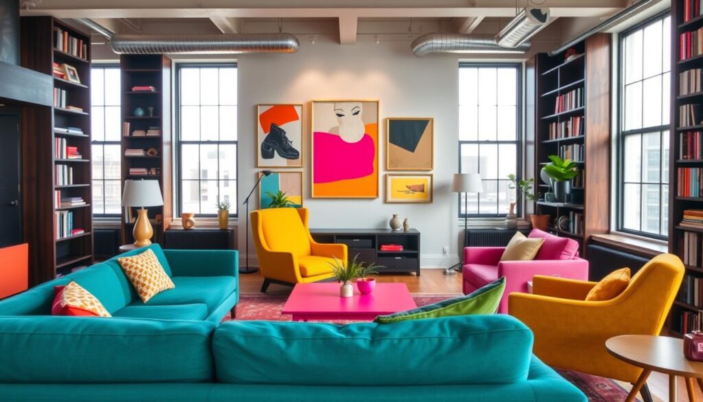 Seguir essa regra garante um espaço colorido sem exagerar. Isso mantém a harmonia nos lofts pequenos.
