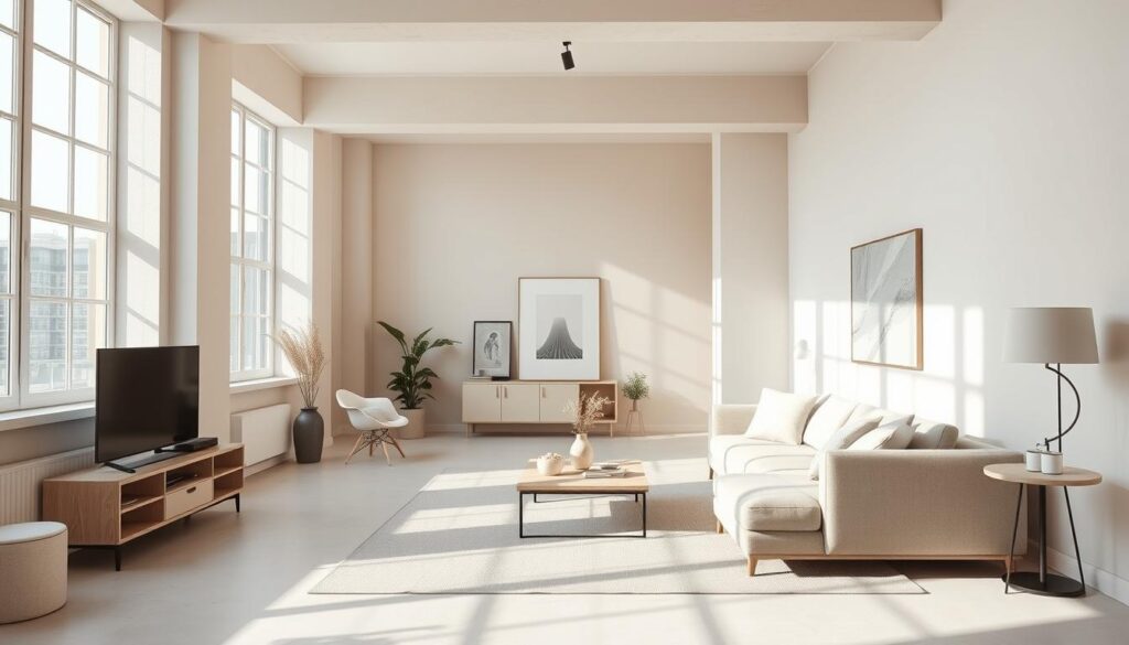 Ao escolher cores claras para seu loft, lembre-se do equilíbrio. Misture diferentes tons e texturas. Isso cria profundidade sem perder a sensação de amplitude.