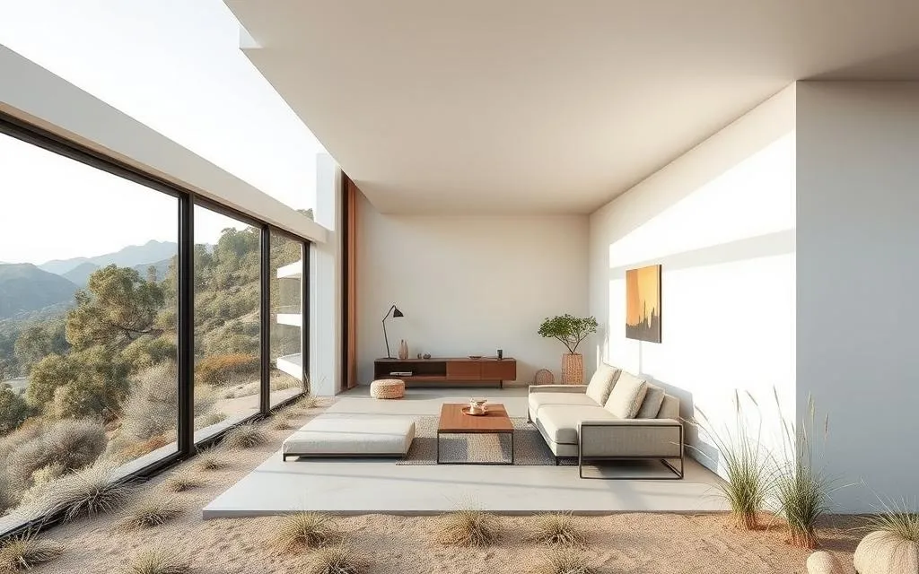 A luz natural é essencial na arquitetura minimalista. Ela cria ambientes acolhedores e energizantes. Janelas amplas e cortinas leves maximizam a luz natural, melhorando a sensação de liberdade.