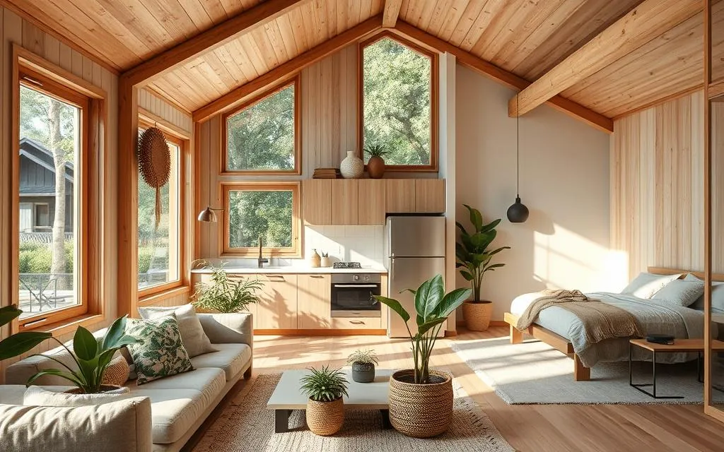 Os designs dessas casas são modernos e inteligentes. Eles usam o espaço de forma eficiente, criando lugares aconchegantes. Para saber mais sobre essas casas, veja casas pequenas sustentáveis. Elas representam um novo caminho para morar, combinando funcionalidade e beleza.