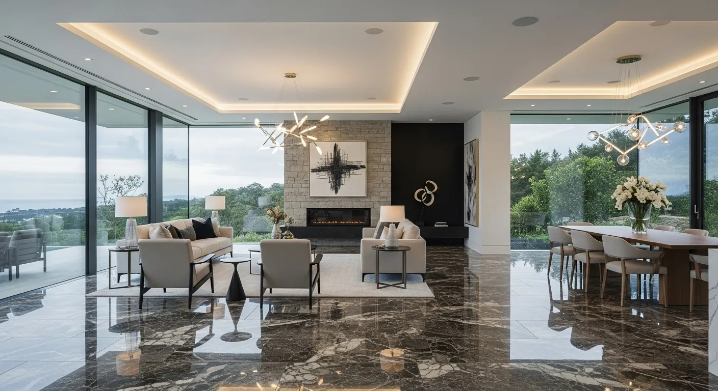 - Piso de concreto: Ideal para áreas internas e externas, trazendo um ar contemporâneo.