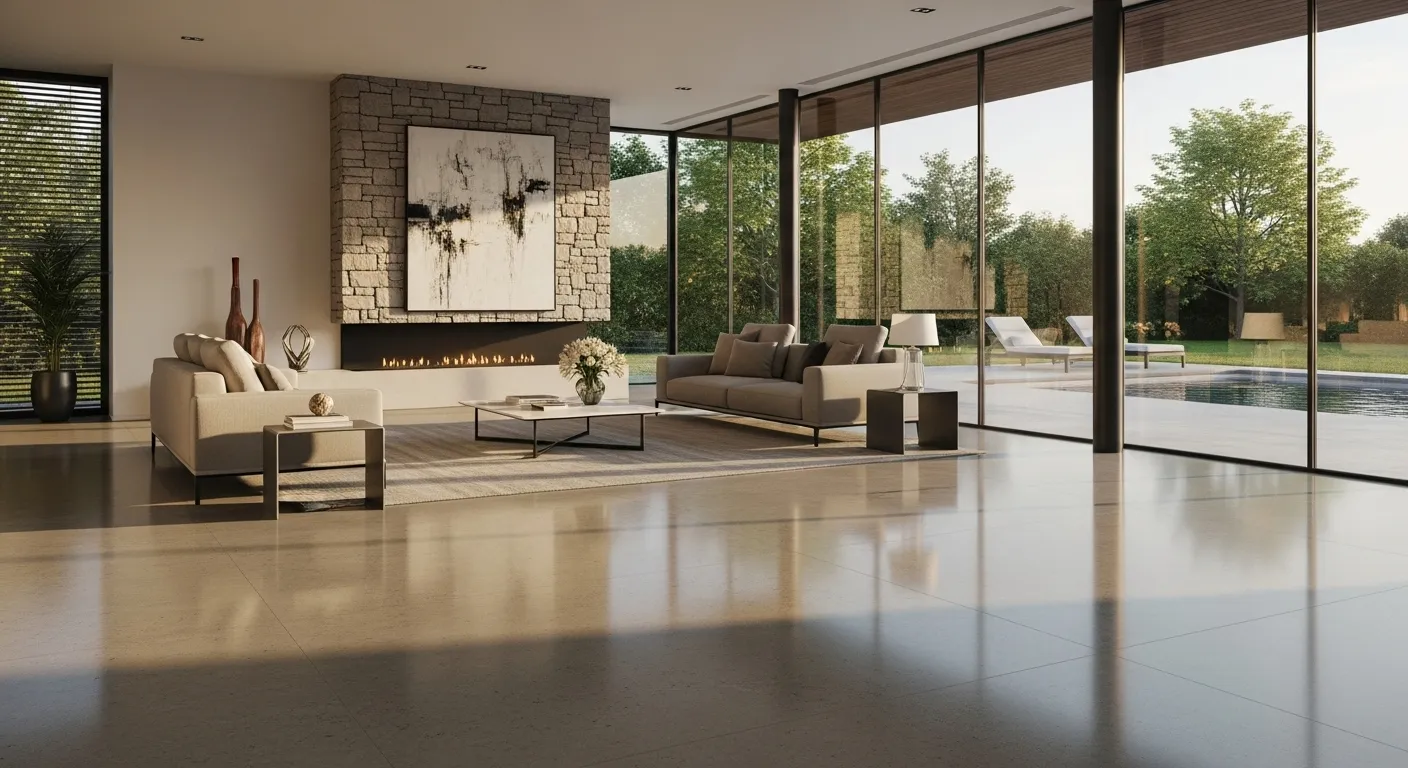 - Casas com linhas retas e ampla utilização de vidro, proporcionando integração visual entre interior e exterior.