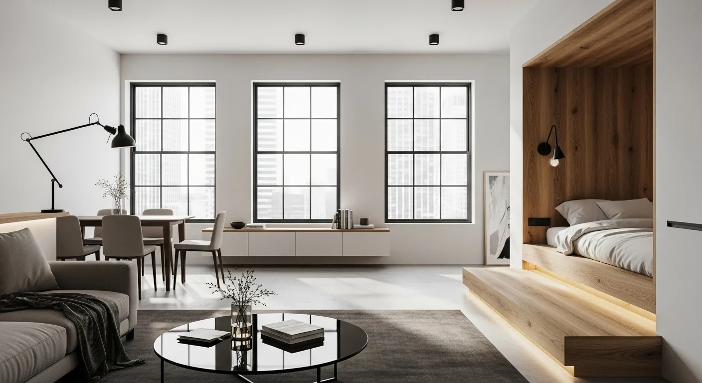 Linhas retas, tons neutros e mobiliário contemporâneo são perfeitos para quem busca uma estética modernista e minimalista.