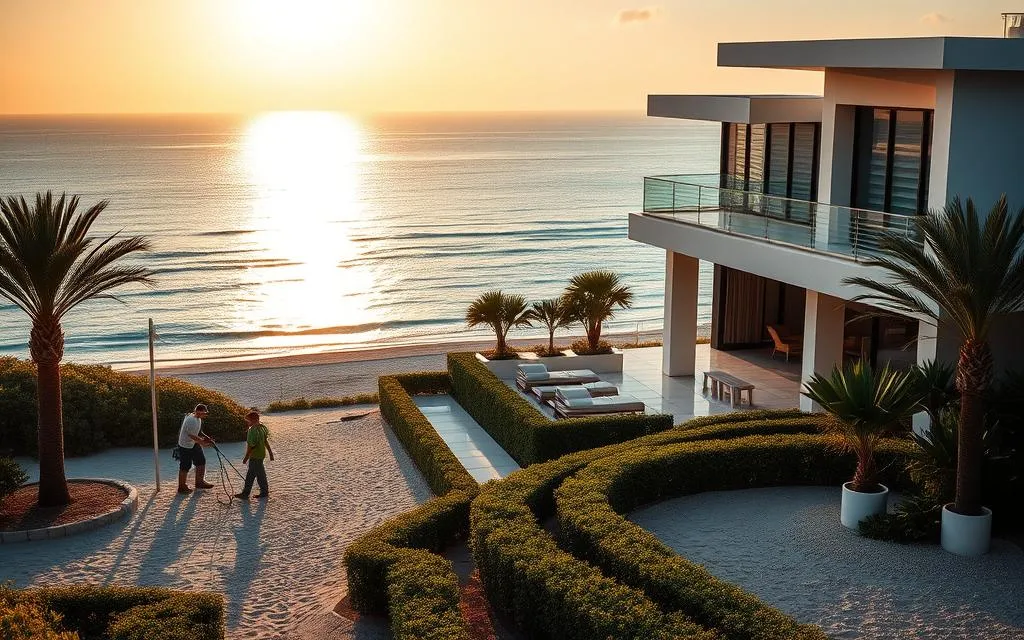 Manter uma casa de praia moderna requer cuidados diários. É importante limpar as áreas externas e cuidar com as manchas de sal. Usar produtos menos agressivos à natureza ajuda a manter a beleza da casa.