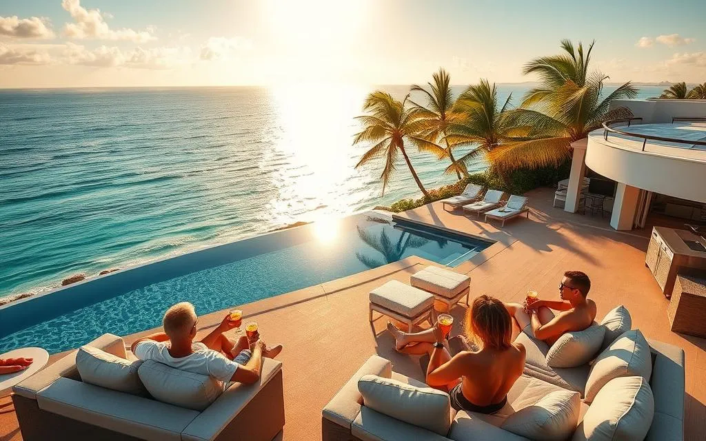 - Piscinas ou jacuzzis para aumentar o prazer no calor.