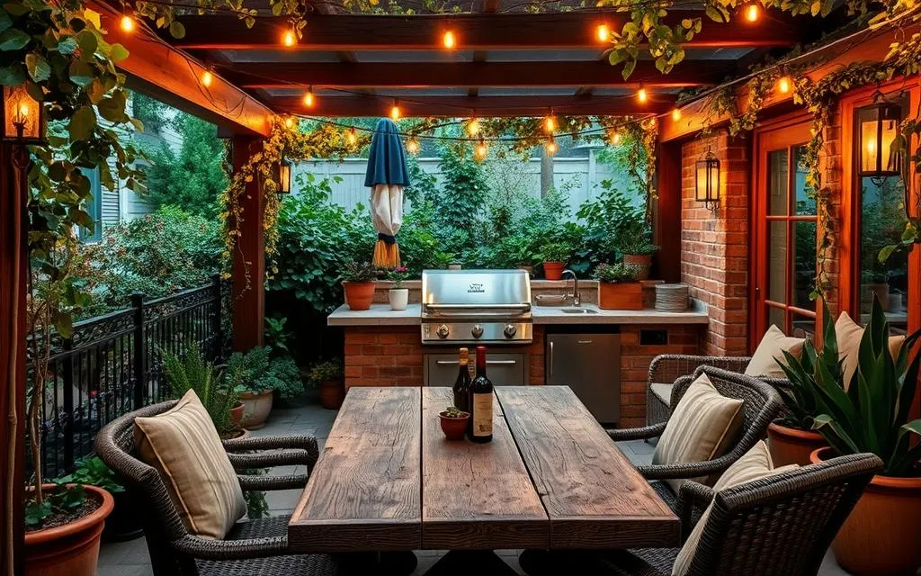 Um espaço gourmet é ótimo para a vida social externa. Deve ter churrasqueira, pia e mesa para jantar ao ar livre. Isso ajuda a criar momentos especiais com família e amigos.