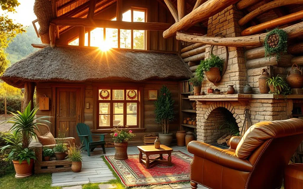 Adicionar elementos naturais como móveis de madeira reciclada enriquece a decoração. Esses elementos rústicos dão um toque especial ao espaço. Móveis confortáveis e acessórios que mostram a tradição local fazem o ambiente ser encantador.