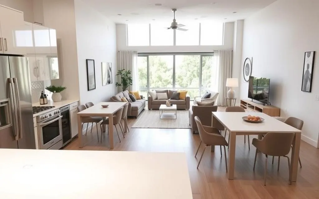 Para integrar ambientes, use plantas com espaços abertos. Conecte a cozinha à sala de estar com janelas grandes para aproveitar a luz natural.