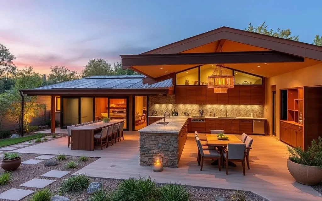 As casas modernas com área gourmet estão mudando para atender às novas necessidades. Elas agora focam em soluções sustentáveis e práticas. Isso traz conforto e cuidado com o meio ambiente.