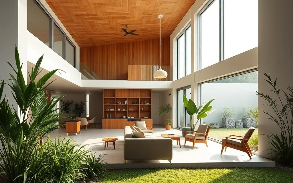 • Diminuição do impacto ambiental: Materiais como madeira reciclada e bambu têm menos efeito negativo no meio ambiente.