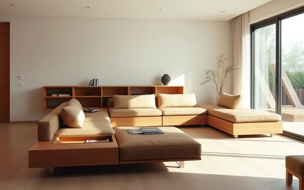 O mobiliário multifuncional é essencial em projetos Minimalista. Ele ajuda a usar melhor o espaço da casa. É perfeito para quem quer casas modernas que são bonitas e úteis.