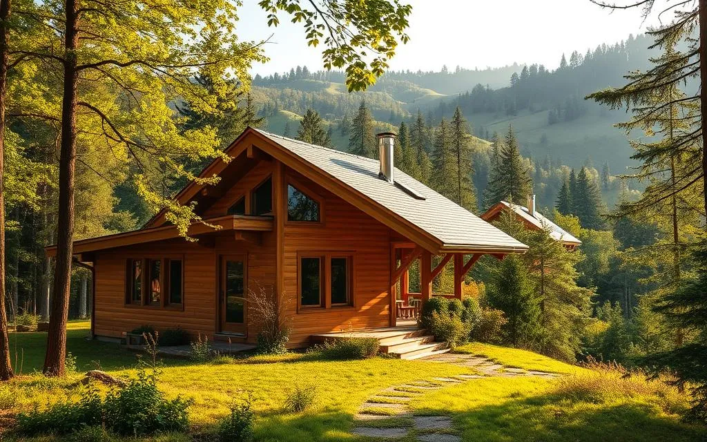 Uma casa pequena de madeira é ótima para quem quer conforto e conexão com a natureza. Ela usa madeira como principal material. Isso cria um ambiente acolhedor e sustentável.