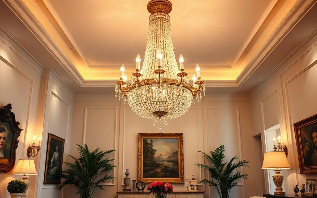 | Clássico | Elementos ornamentais, cristal | Salas com estilo tradicional |