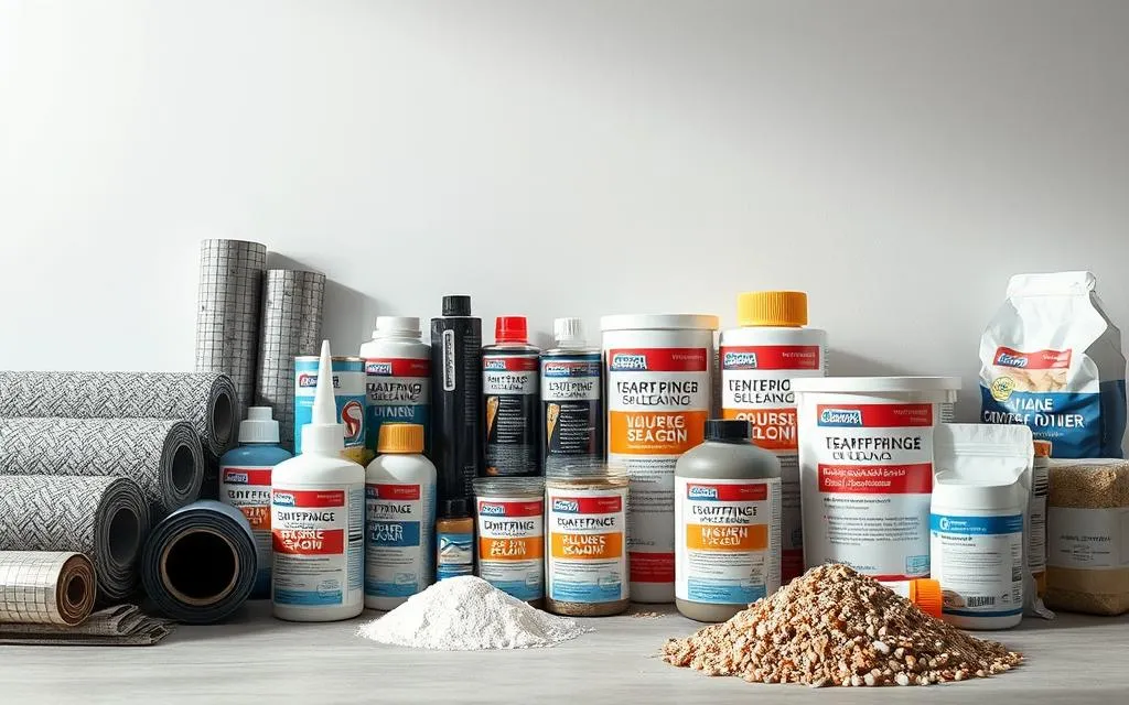 Para telhados e lajes, usam-se mantas asfálticas de marcas como Vedacit e Sika. Elas criam uma barreira resistente. Em áreas externas, soluções acrílicas protegem e dão um acabamento bonito.