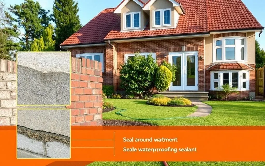 Em banheiros, aplique membrana líquida no box e finalize com rejunte epóxi. Em fachadas e janelas, vede com mastiques e silicones. Em caves, use argamassa adequada à pressão.