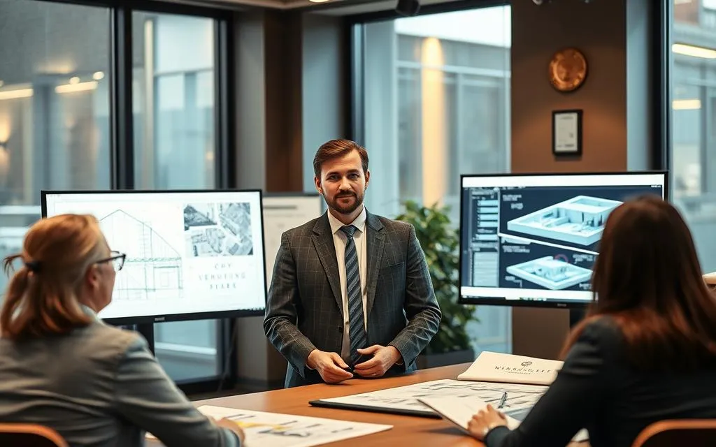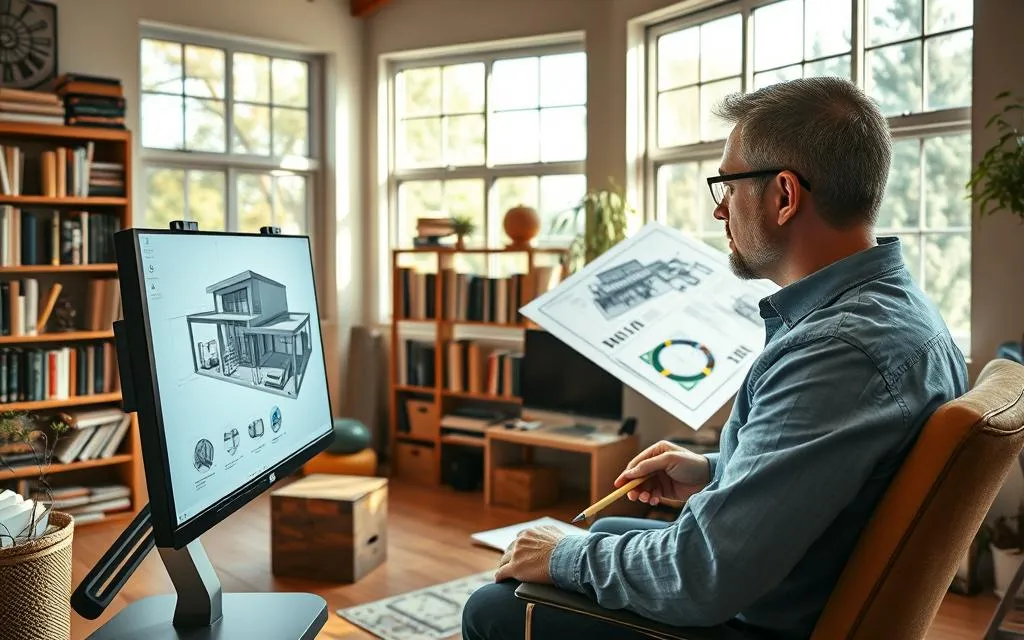 Ele planeja cada etapa, usa 3D para visualizar antes de construir e garante segurança, economia e eficiência desde o início.