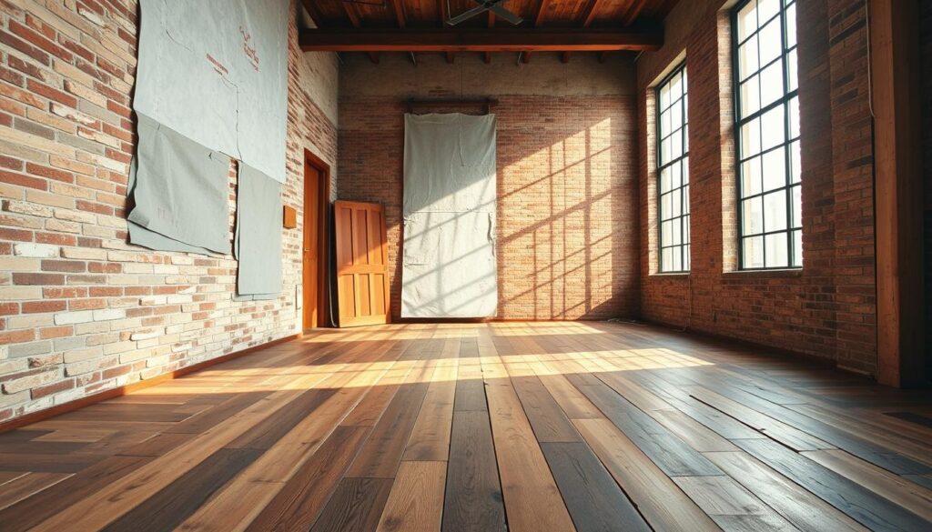 Na decoração de pisos estilo loft moderno, os revestimentos rústicos são essenciais. Eles criam ambientes sofisticados e acolhedores ao mesmo tempo. Por exemplo, o revestimento cimentício decorativo é perfeito para quem quer um estilo contemporâneo.