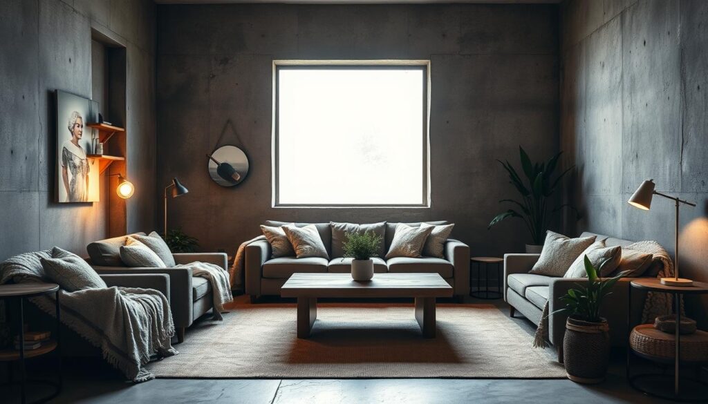 Na decoração industrial, o cimento queimado é um destaque. Essa técnica une rusticidade e modernidade de forma perfeita.