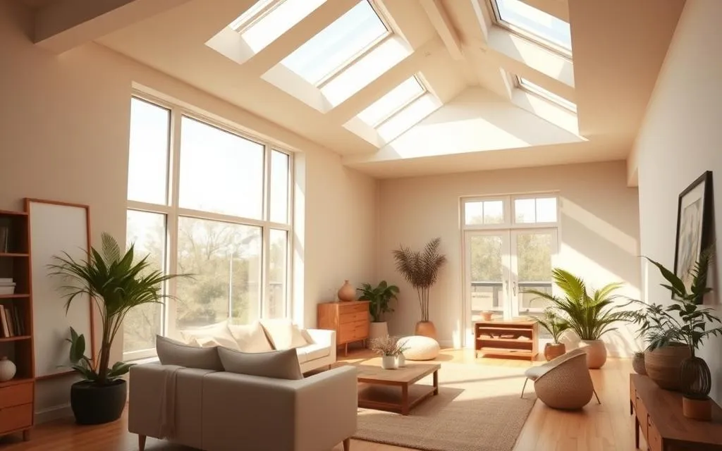 A iluminação natural é crucial em um loft sustentável. Ela não só decora os espaços, mas também ajuda a economizar energia. Com grandes janelas e claraboias, você aumenta a luz natural. Isso faz o ambiente ser mais saudável e acolhedor.