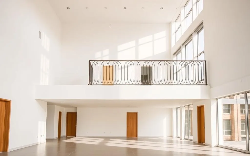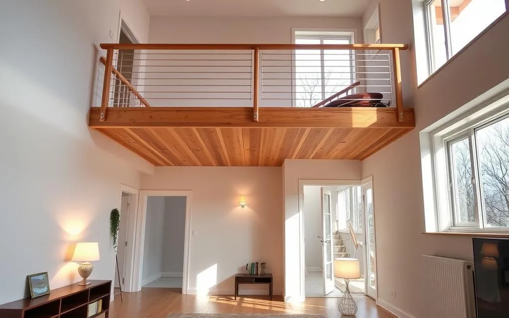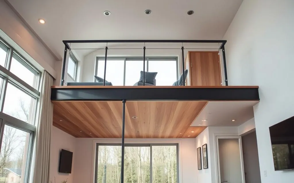 Um mezanino é um andar intermediário em casas. Ele ajuda a usar o espaço vertical. Isso cria quartos ou escritórios em lugares pequenos.