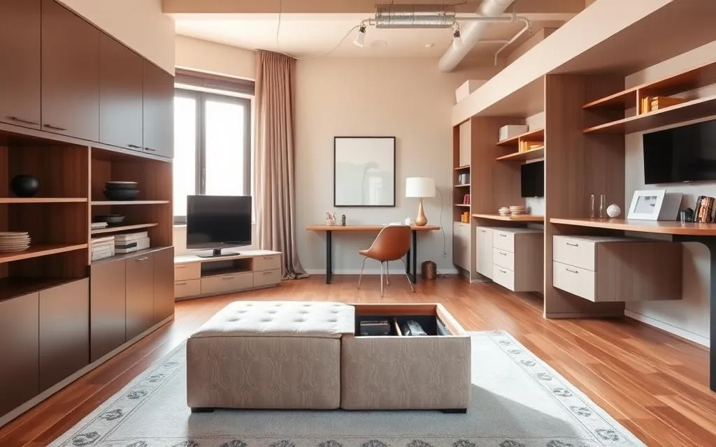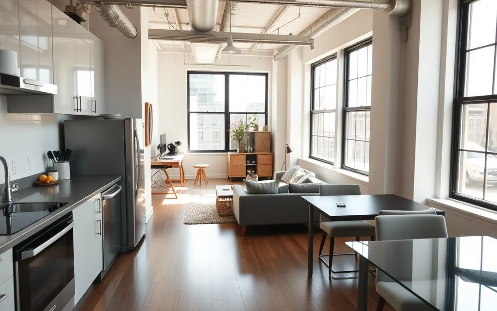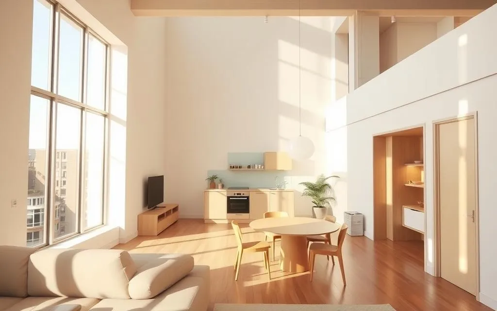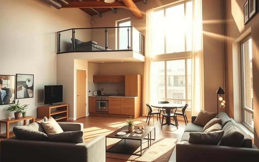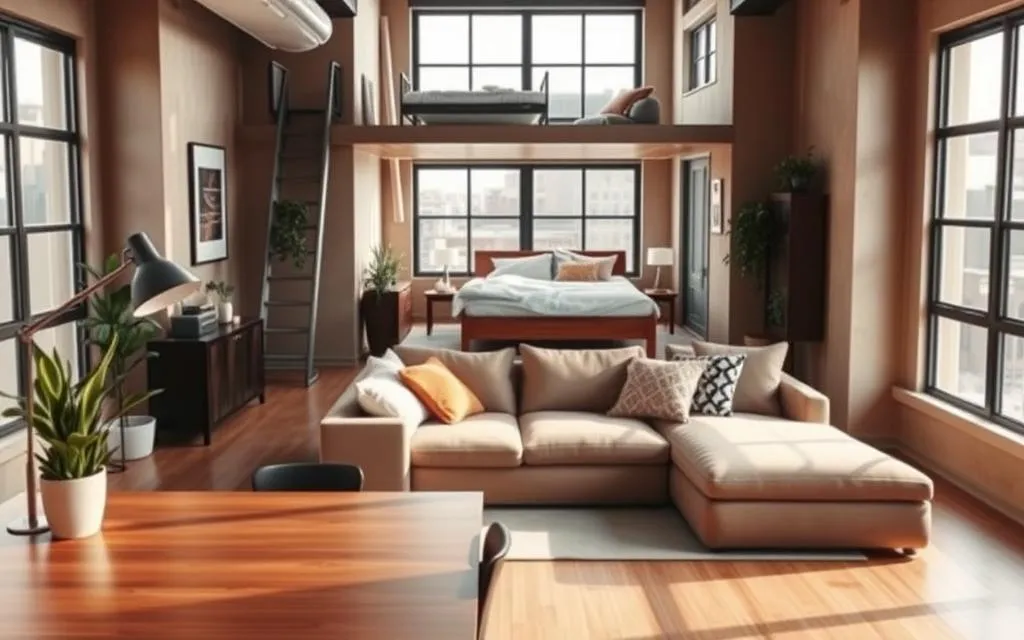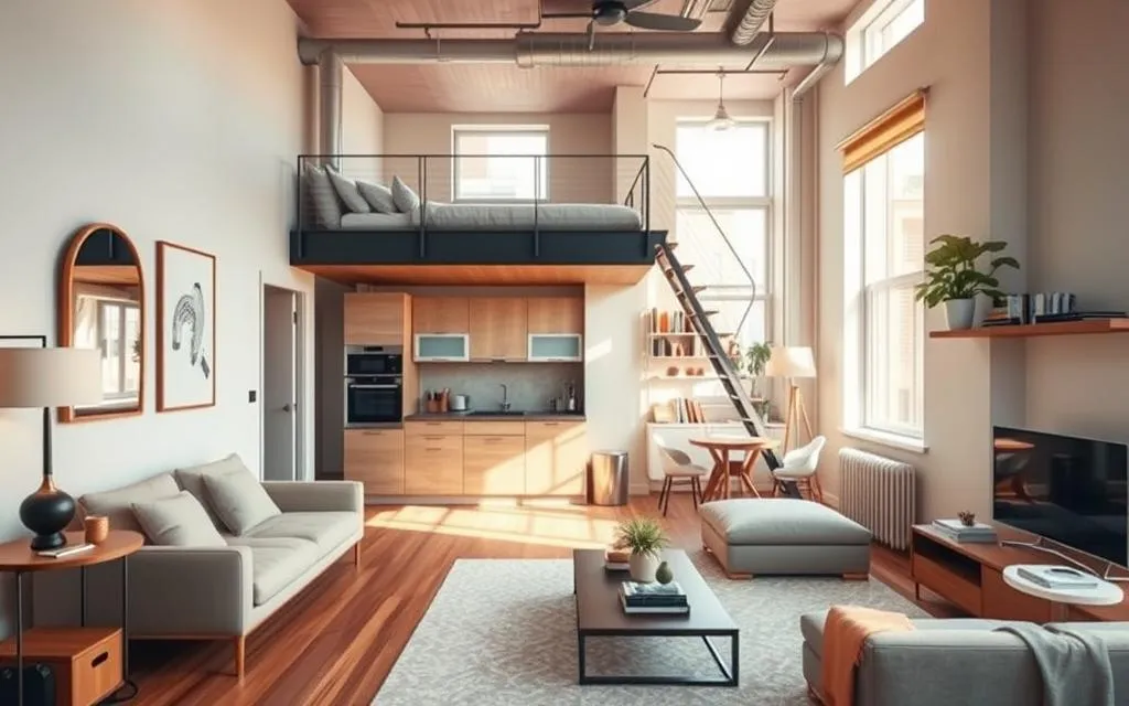 O design inteligente em lofts pequenos é essencial. Ele cria ambientes bonitos e funcionais. A ideia é usar cada metro quadrado de forma inovadora.