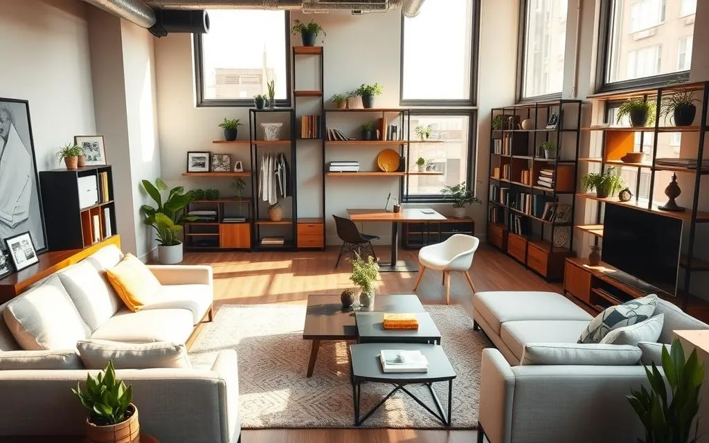 Móveis que economizam espaço são essenciais em lofts pequenos. Mesas que se dobram, sofás-camas e estantes multifuncionais são ótimas opções. Elas ajudam a aproveitar melhor o espaço sem perder o estilo.