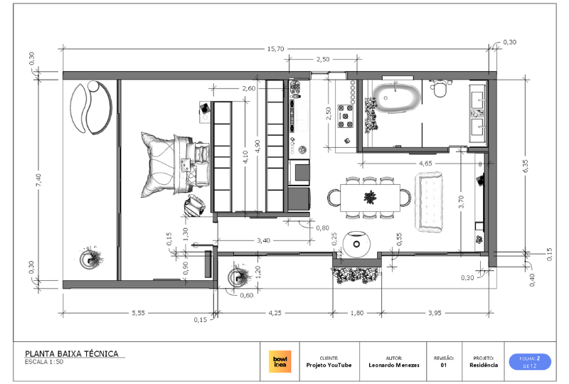 Além de facilitar a execução da obra, a planta baixa cotada também pode ser muito útil no planejamento de móveis e decoração. Como ela já indica as dimensões exatas de cada cômodo e da posição das aberturas, fica mais fácil determinar o tamanho dos móveis e como eles se encaixarão no espaço disponível.