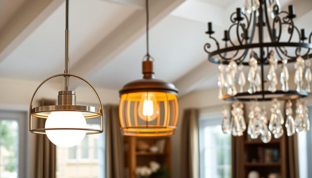 Cada tipo de luminária pendente tem características únicas. Isso ajuda a personalizar a iluminação. Assim, você encontra a opção perfeita para seu espaço.