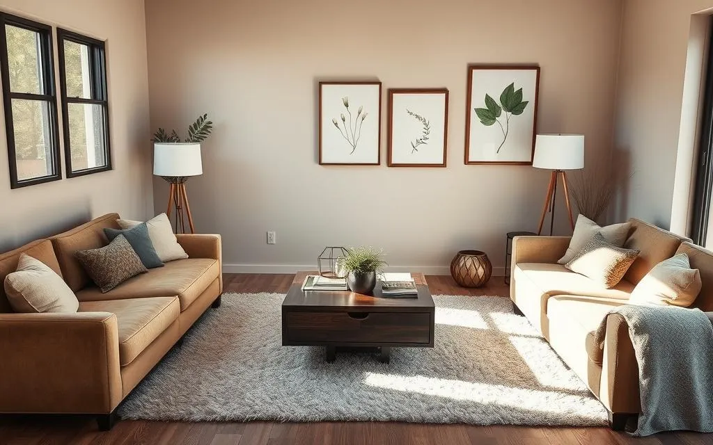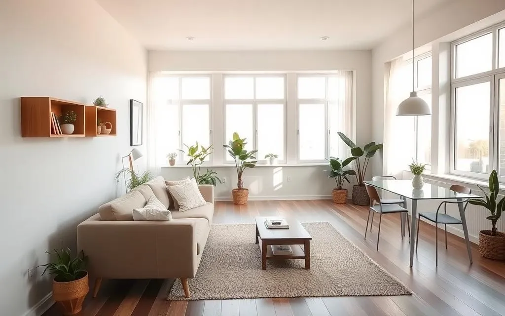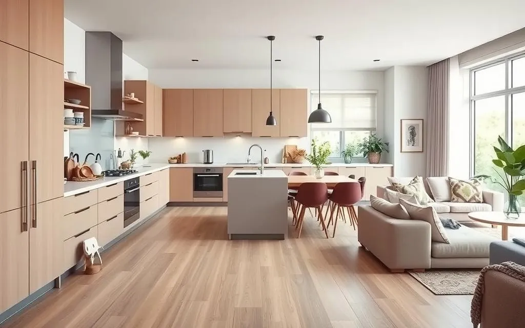 Para unir ambientes pequenos, escolha cores que combinem. Prefira móveis que não chamem muito a atenção. Adicione detalhes como almofadas e quadros para fortalecer a conexão entre os espaços.
