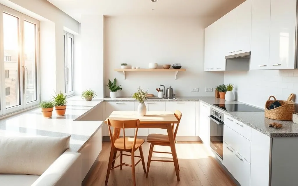 Escolher estilos de móveis modernos é importante. Móveis com linhas retas e acabamentos minimalistas, como armários de MDF, são ótimos para espaços pequenos. Mesas dobráveis e cadeiras empilháveis também são práticas, mantendo o charme.