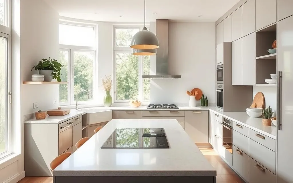 Escolher materiais sustentáveis é uma decisão importante. Prefira superfícies duráveis e bonitas, como pedras naturais ou madeiras certificadas. Esses materiais são bons para o ambiente e fazem a cozinha durar mais.