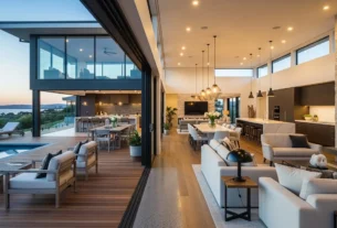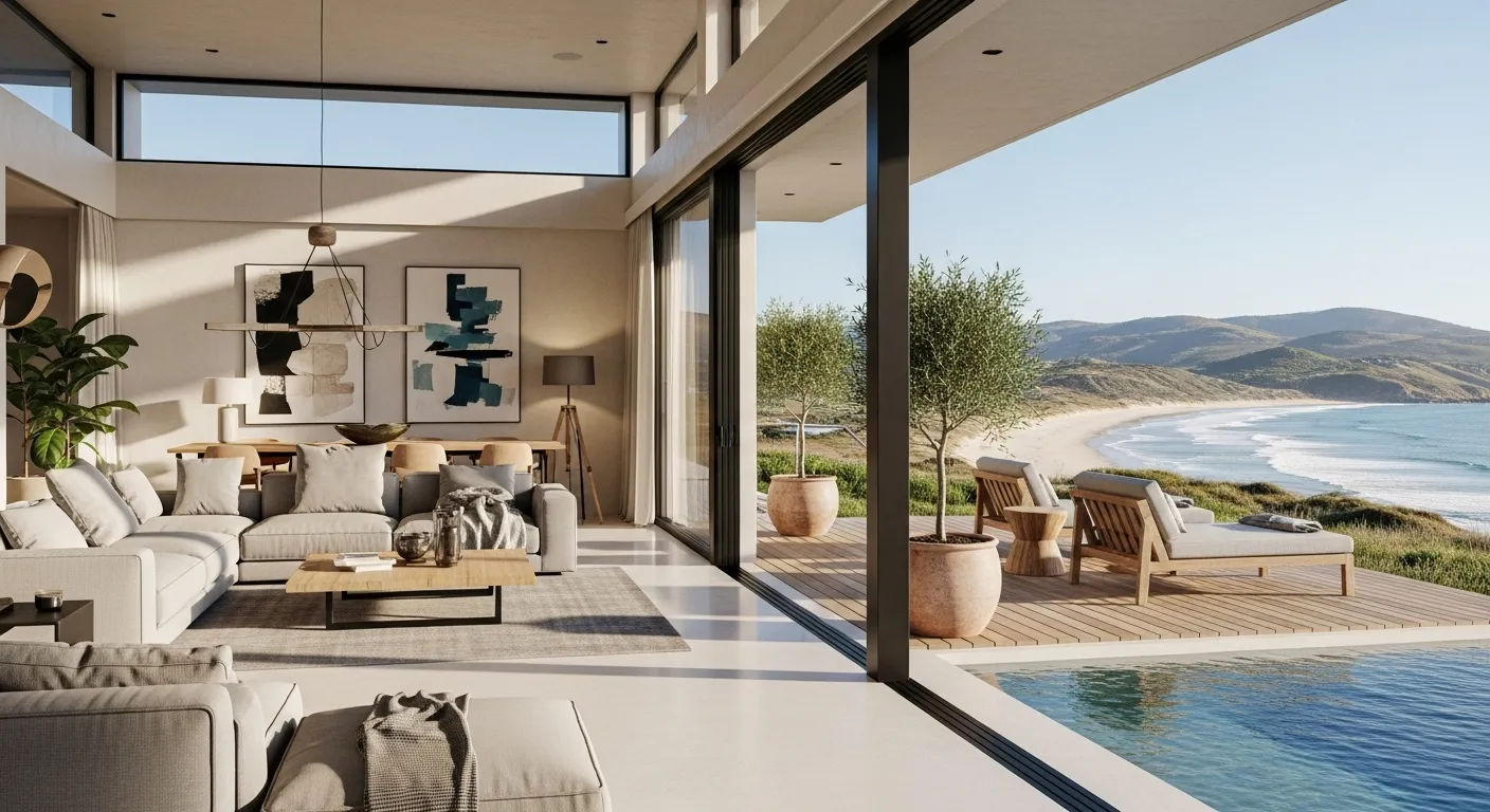Utilize materiais naturais, crie transições suaves com varandas e jardins, e escolha uma palete de cores que harmonize com a paisagem.