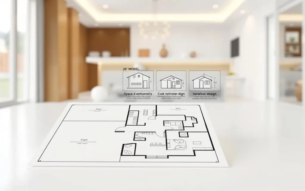 A modelagem 2D é ótima para ver o projeto. Ela mostra diferentes perspectivas, como plantas baixas e diagramas. Isso ajuda a entender como os espaços se relacionam.