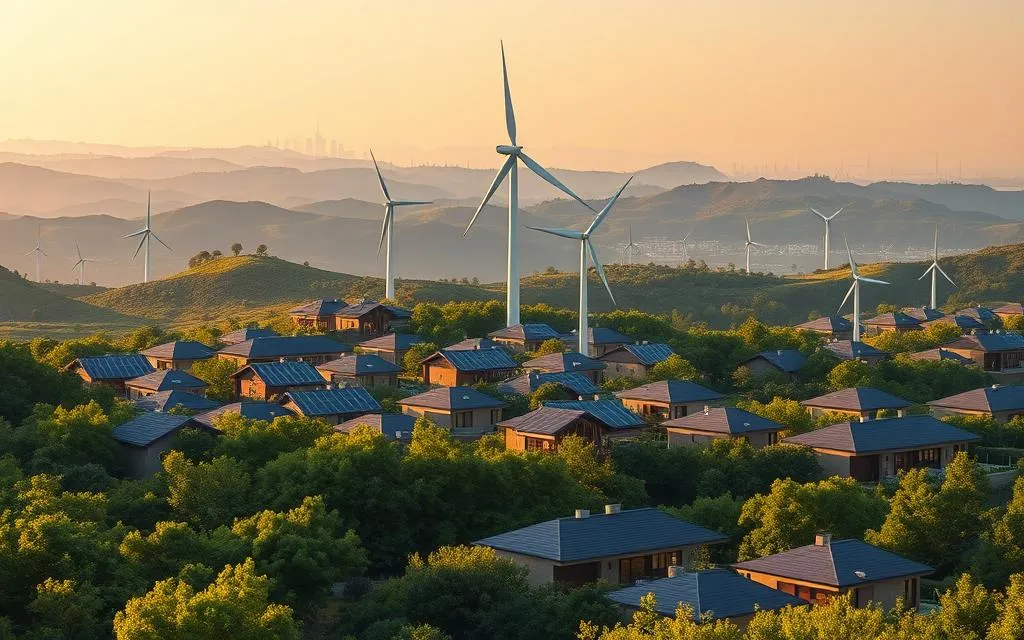 - Casas sustentáveis que se encaixam no meio ambiente, mostrando soluções ecológicas.
