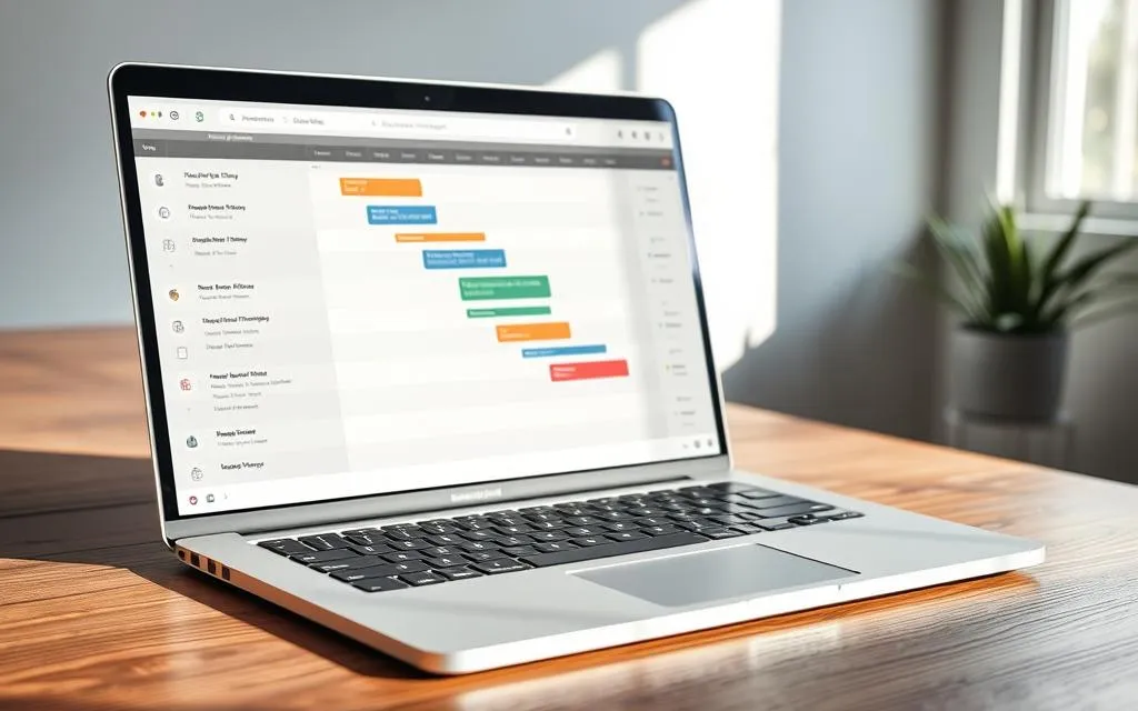Usar uma planilha com cronograma em Gantt melhora muito a gestão de projetos. Essa ferramenta ajuda a ver as etapas do projeto de forma clara. Isso facilita entender os prazos e como as atividades se relacionam.