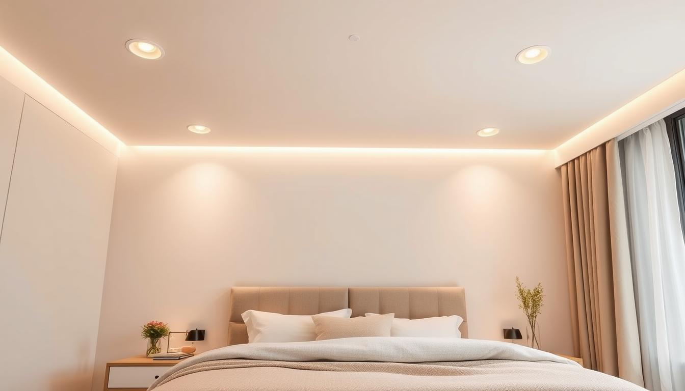 A iluminação embutida para quarto não é só funcional. Ela se tornou essencial para design de interiores. Ela permite criar ambientes personalizados e sofisticados.