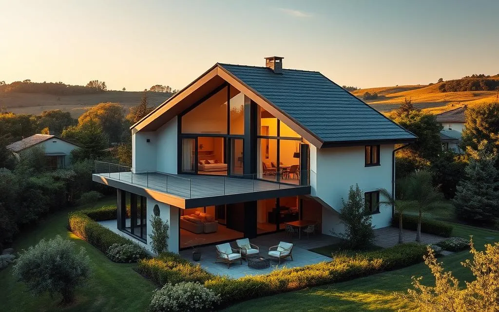 Você já pensou como o telhado pode mudar sua casa e sua vida no campo? Casas Modernas com Telhado Diferenciado estão ganhando popularidade. Elas combinam beleza e praticidade em projetos modernos. Vamos ver como a arquitetura contemporânea cria espaços que são belos e confortáveis.